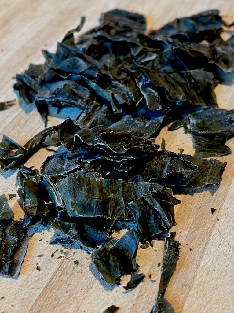 20 g alg, mogą być Kombu (Laminaria) lub Wakame (Undaria) – pokroić na kawałki około 2 x 2 cm