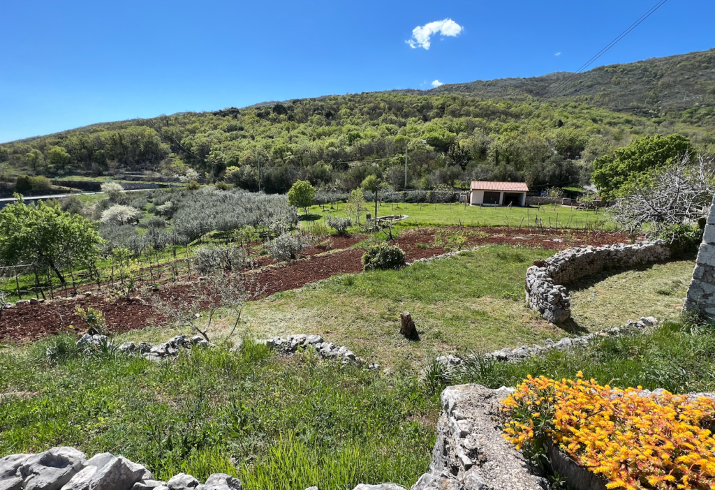 Po pierwszym wrażeniu na temat ludzi, drugie co daje się zauważyć po przekroczeniu granicy słoweńsko-chorwackiej to całkowita zmiana pejzażu. Jest to dość niezwykłe, bo to jakby przekroczyć niewidzialną rzekę, a po drugiej stronie – czeka na nas zupełnie inna kraina. Zamiast wysokich Alp i zimnych skał, płaskowyżu i znanej nam z Polski zieleni, nagle jawi się gleba bogata w tlenki żelaza, ruda do granic możliwości. Zielona tkanka ozdobiona rozczochranymi palmami, tu i tam kozy. Czasem owce. Słońce żarzy się na zboczach białych gór, które służą tutaj między innymi jako złoża kamienia budowlanego. No może niektóre, bo oczywiście większość wzgórz jest nienaruszona, zielona, objęta ochroną. Ale to, że kamienie z gór służą tu jako budulec jest do zauważenia od samego przejścia granicznego, bo od pierwszej posesji widać kamienne podmurówki i murki z kamieni ułożonych na sobie jak cegły. Czasem już nawet nie widać co te kamienie wiąże, murek wygląda tak, jakby kamyki leżały na sobie w stosie zupełnie luzem. Widok wręcz antyczny.